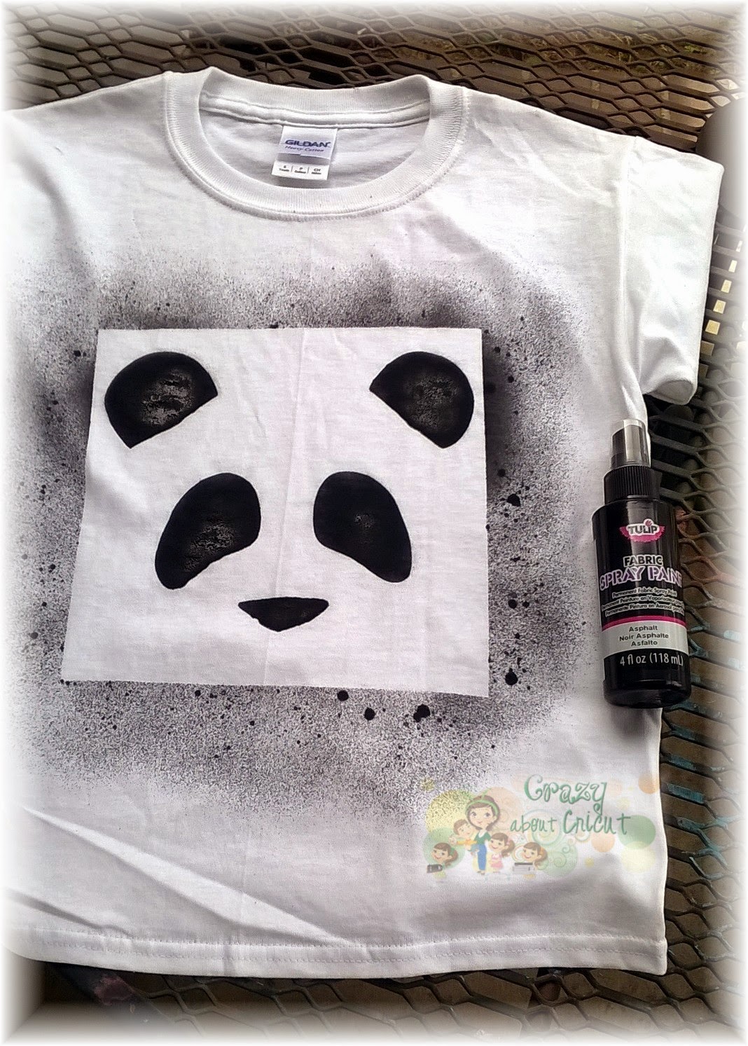 First, let's take a look at the main party favor. We were going to a jumping place where the room was going to have a glow/black light effect. I thought a black and white shirt would look awesome! We were trying to stretch our budget as far as it could go. I needed to make 14shirts, so that was a tall order. I ended up being able to find the shirts at the Dollar Tree. To make the panda face, I used this amaaaaaaaazing fabric spray by Tulip.